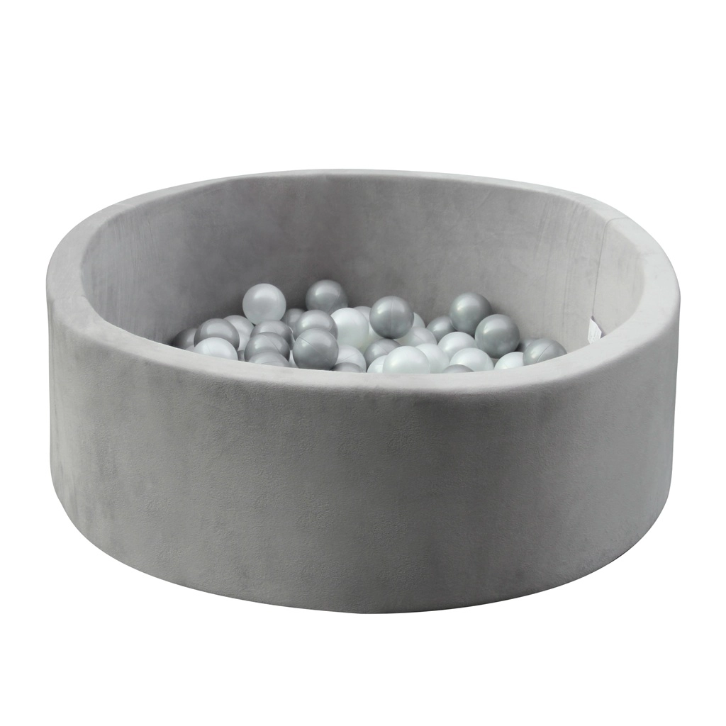 O piscină cu bile stilată și sigură, în nuanță gri elegantă, oferă copiilor de la 6 luni un loc moale și protejat pentru joacă și relaxare. Datorită marginilor moi, umpluturii din spumă și 120 de bile, susține dezvoltarea motricității fine și grosiere, a coordonării și a percepției senzoriale. Ideală pentru camera copilului sau colțul de joacă.
