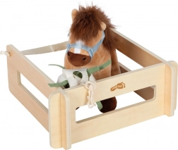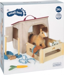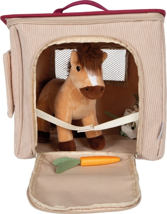 Acest set de joacă small foot, realizat cu atenție la detalii, le oferă copiilor tot ce au nevoie pentru lumea cailor. Geanta solidă din catifea reiată se transformă în câteva clipe datorită fermoarelor într-un grajd practic și într-un spațiu de depozitare pentru accesorii. În fața grajdului se poate ridica un țarc cu bandă velcro sau se poate închide circular ca un padoc – jocul pare realist și încurajează povestirea liberă.