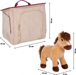 Geanta din catifea reiată, fermă și cu fermoar, se transformă instant într-un grajd. Datorită mânerului, copiii o pot lua ușor oriunde – joc ideal acasă și în deplasare.