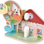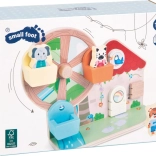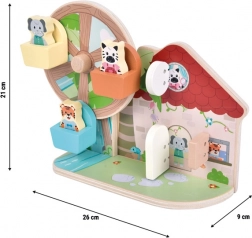 Această jucărie motrică colorată small foot transformă camera copilului într-un mic centru de distracții. Copiii vor iubi rotirea roții panoramice cu ajutorul manivelei care se învârte lin, așezarea animalelor din lemn în cabine și descoperirea motivelor din spatele ușițelor colorate. Jucăria dezvoltă natural motricitatea fină, coordonarea mână–ochi și gândirea logică și, în același timp, stimulează imaginația și explorarea independentă.