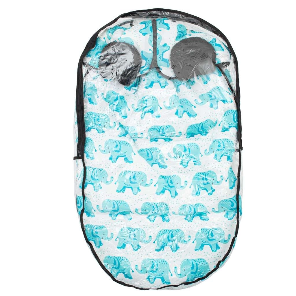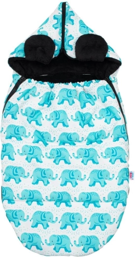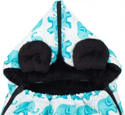 Siguranța este asigurată de deschiderile pentru centurile de siguranță în 5 puncte, care mențin bebelușul bine fixat în timpul deplasării. Partea superioară îngustată formează o glugă confortabilă, care protejează mai bine capul de vânt și frig. Designul modern cu elefănței și certificarea OEKO-TEX Standard 100 garantează calitatea și delicatețea pentru pielea copilului.