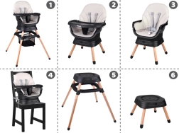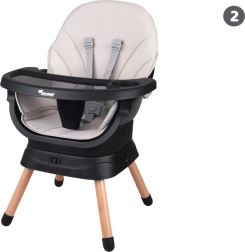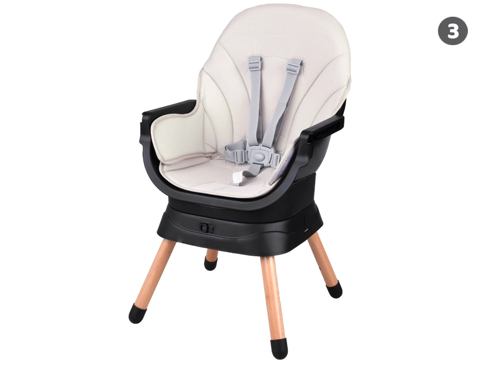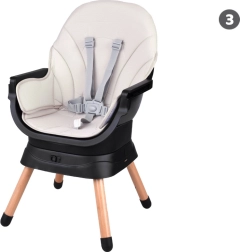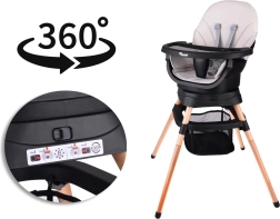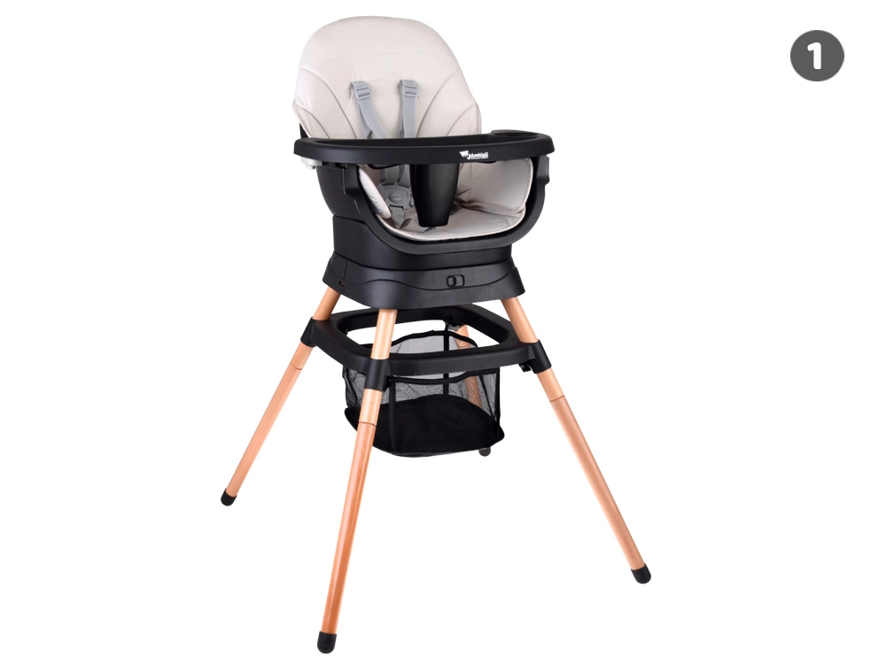 Acest scaun modern și ergonomic îmbină stabilitatea, siguranța și designul modular. Cu un sistem de fixare printr-un singur click, îl transformi rapid în funcție de nevoile actuale ale copilului – de la primele diversificări până la ședere și joacă independentă. Aspectul minimalist se potrivește în orice interior.