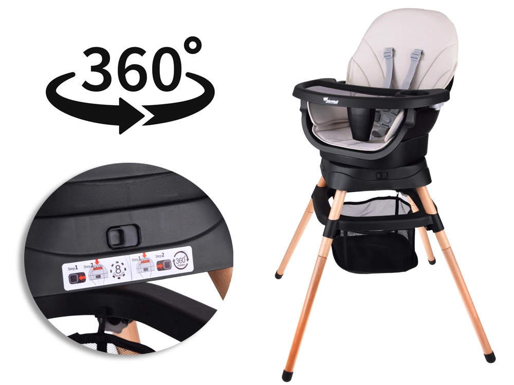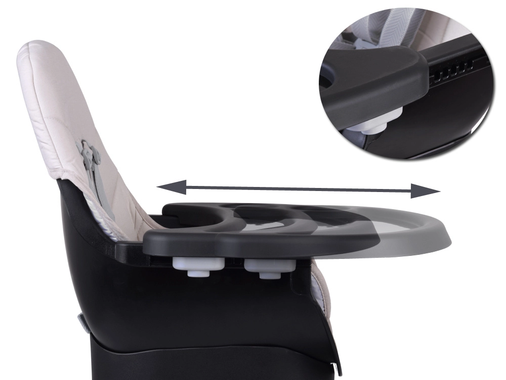 - Scaun de masă înalt cu tăviță reglabilă și detașabilă
