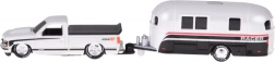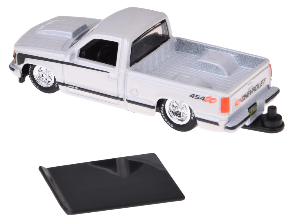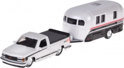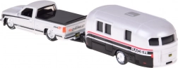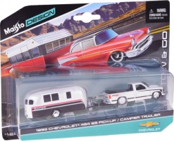 Acest set licențiat va bucura orice fan al clasicelor americane. Modelul CHEVROLET 454 SS pick-up (1993) în elegantul alb este cuplat cu o rulotă, care amplifică aspectul realist și posibilitățile de joc. Piesele metalice și execuția atentă subliniază valoarea de colecție.