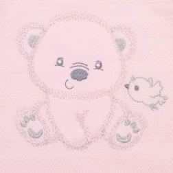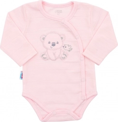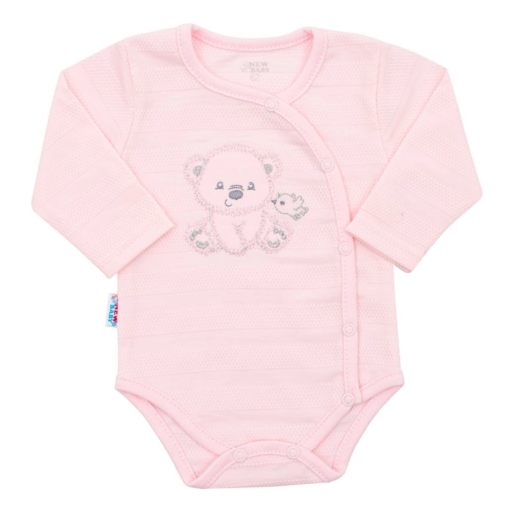 Drăgălașul set pentru bebeluși New Baby Sweet Bear, format din 4 piese, în culoare roz, este ideal pentru maternitate și pentru primele săptămâni acasă. Conține body cu mânecă lungă cu deschidere completă, salopetă (pijama cu botoșei), jachetă și căciuliță din 100% bumbac. Capsele practice pentru schimbare ușoară, materialul moale și blând cu pielea și broderia fină cu ursuleț și păsărică fac din acest set o alegere practică și stilată.