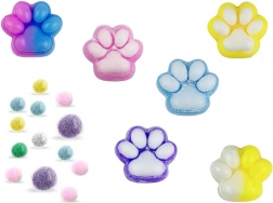 Creează-ți propriile brelocuri drăgălașe în formă de lăbuțe de pisică 3D din slime. Setul conține tot ce ai nevoie pentru amestecare, colorare și decorare, inclusiv forme, coloranți, sclipici și biluțe moi. Distracție grozavă care dezvoltă creativitatea, motricitatea fină și oferă efect antistres datorită slime-ului de strâns.