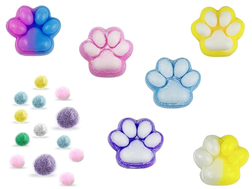 - Set creativ DIY – brelocuri din slime în formă de lăbuțe de pisică 3D