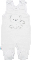 - salopetă/dupași (imprimeu/motiv drăgălaș cu ursuleț și păsărică)