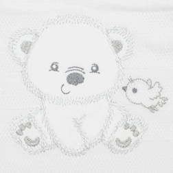 Setul este livrat într-o cutie cadou eco, astfel încât este potrivit și ca cadou minunat pentru proaspeții părinți. 100% bumbac de calitate asigură purtare plăcută, absorbție bună și întreținere ușoară. Culoarea albă neutră și motivele adorabile cu ursuleț și păsărică îl fac o alegere universală pentru fetițe și băieței.