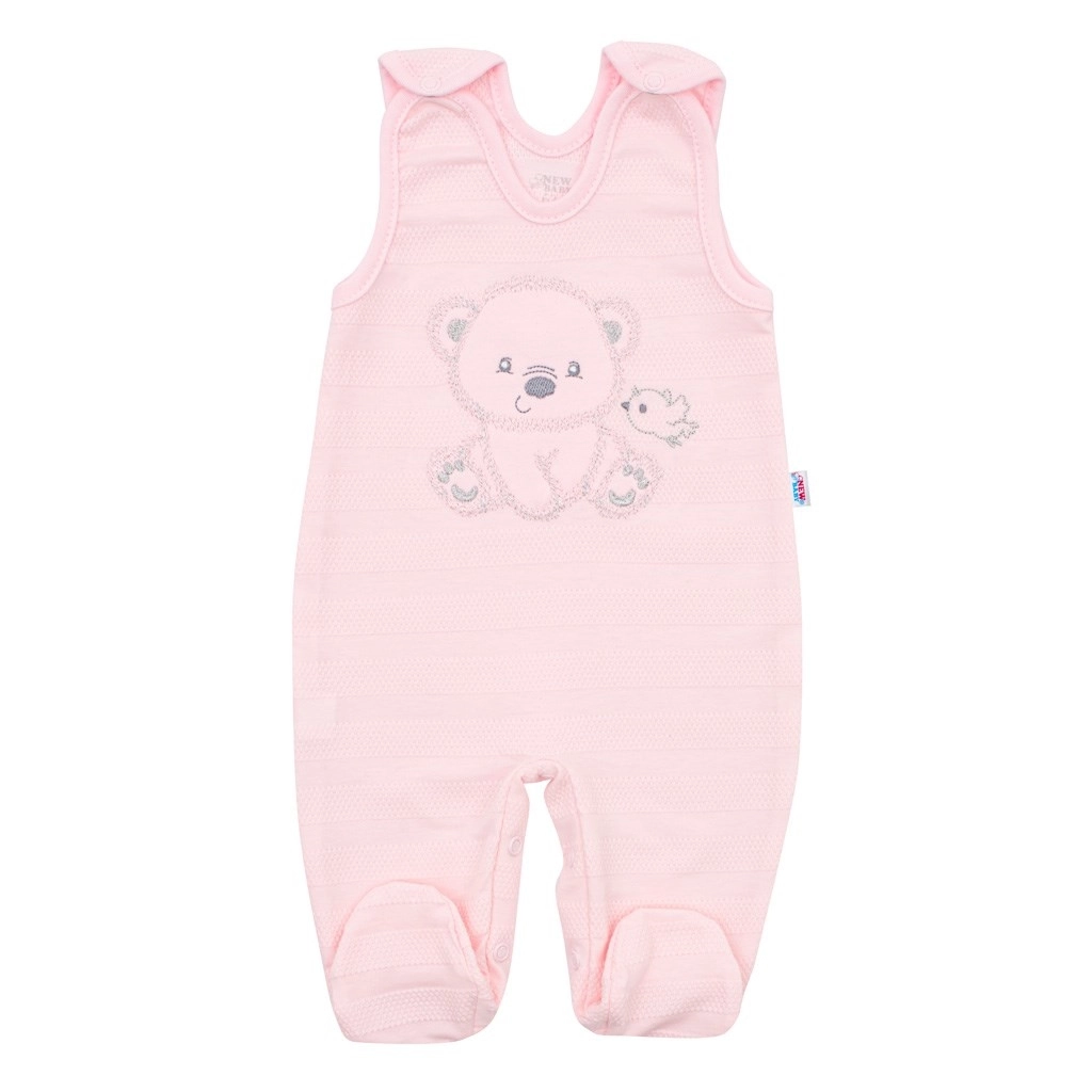 Setul pentru bebeluși New Baby Sweet Bear, în culoare roz, oferă confort, funcționalitate și un design delicat pentru primele luni ale micuțului. Body-ul cu închidere completă și mânecă lungă, împreună cu salopeta cu capse pe bretele și între piciorușe, facilitează îmbrăcarea și schimbarea. Jacheta este uni, cu tiv fin și închidere pe toată lungimea, iar căciulița se leagă cu șnururi și acoperă perfect urechiușele.
