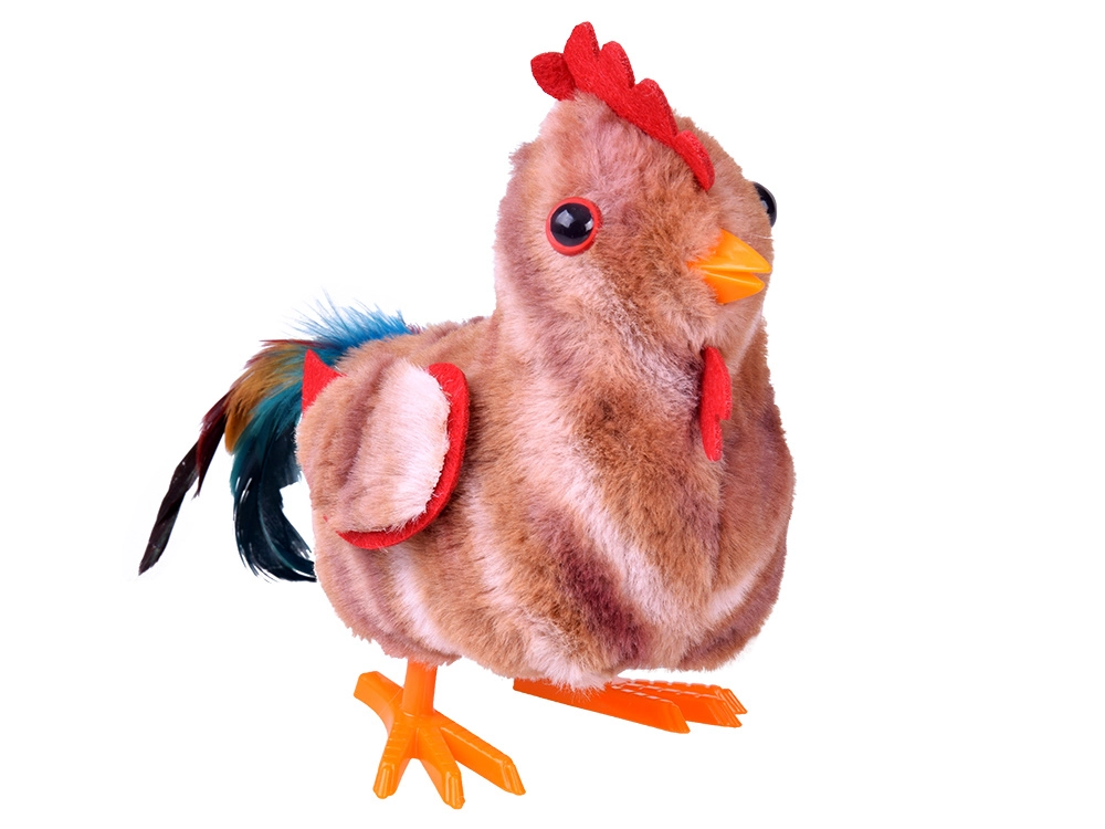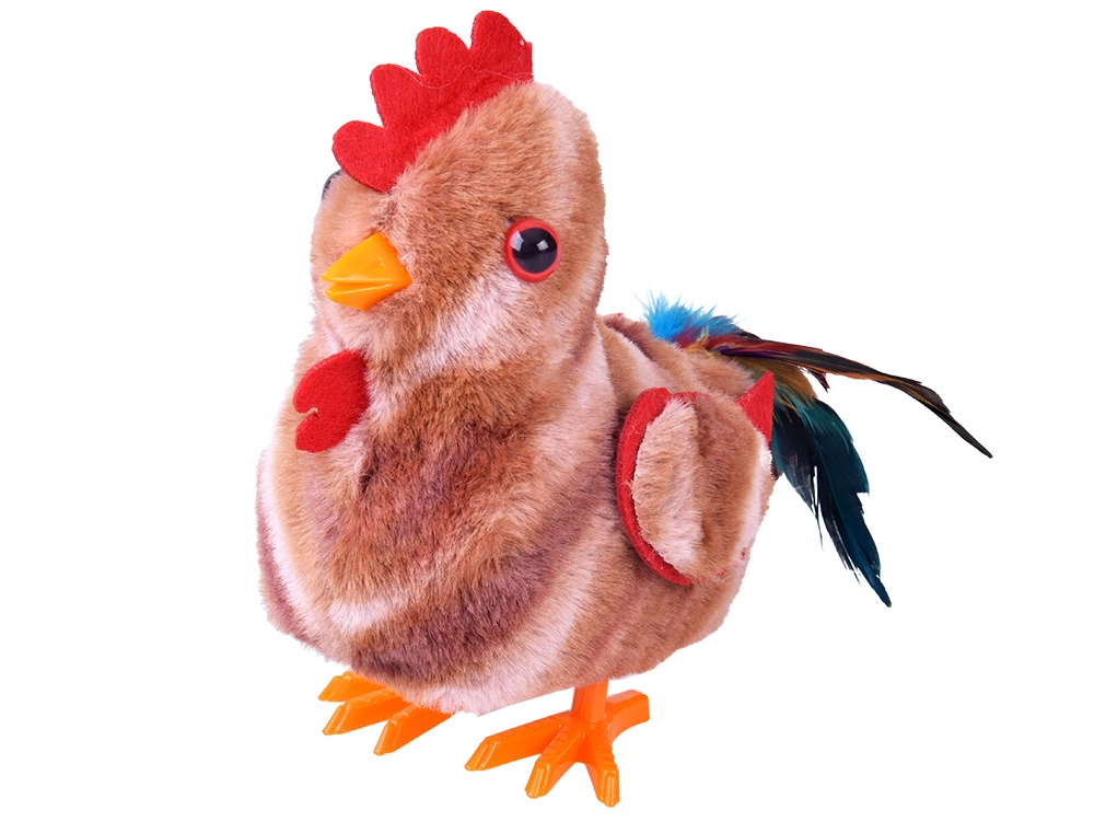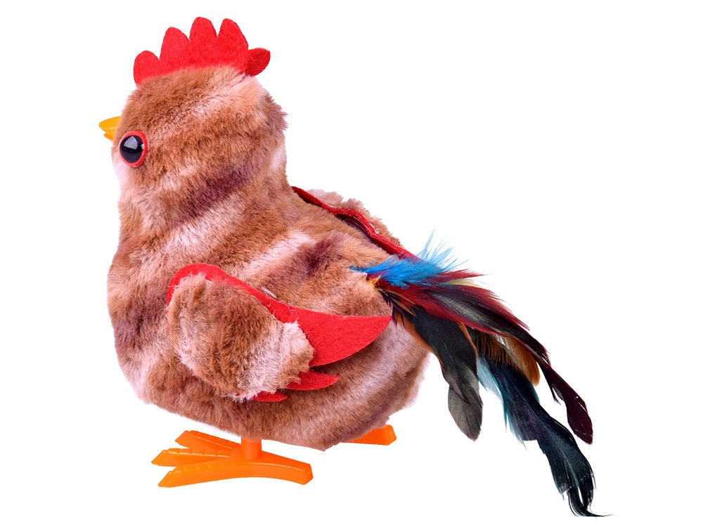 După pornire, cocoșul pornește într-un pas mărunt și dă vesel din aripi – perfect pentru un joc dinamic și plin de voie bună.