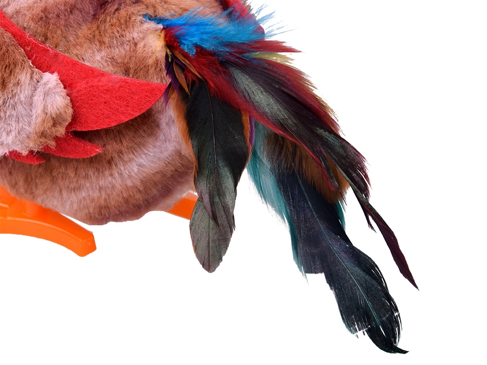 Plușul plăcut, creasta roșie și coada multicoloră încântă atât la atingere, cât și la privire – potrivit pentru alintat și ca decor.