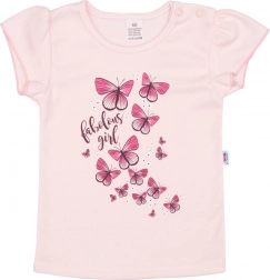 Setul New Baby Butterflies este o alegere ideală atât pentru purtare zilnică, cât și pentru momente mai festive. Tricoul cu mânecă scurtă este decorat cu un motiv delicat cu fluturi și are închidere pe umăr practică, ce ușurează îmbrăcarea bebelușului. Fustița melanj cu volan elegant adaugă ținutei o notă jucăușă.