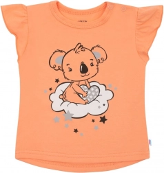 Adorabila pijama pentru copii New Baby Dream, din două piese, în culoare somon, oferă bumbac moale 100% , croială confortabilă și talie elastică care nu apasă pe burtică. Tricoul cu mânecă scurtă este decorat cu volănașe și un drăguț motiv cu koala pe norișor, iar pantalonii scurți au imprimeu all-over și volănașe fine la tivul picioarelor. Ideală pentru vară și ca îmbrăcăminte confortabilă de casă.