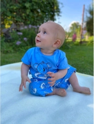 Tricoul cu închidere pe umăr facilitează îmbrăcarea și dezbrăcarea, lucru apreciat de orice părinte. Pantalonii scurți cu talie elastică nu apasă pe burtică și stau confortabil la locul lor. Datorită finisajelor de calitate și tricotului fin, pijama este blândă cu pielea sensibilă a copiilor.