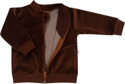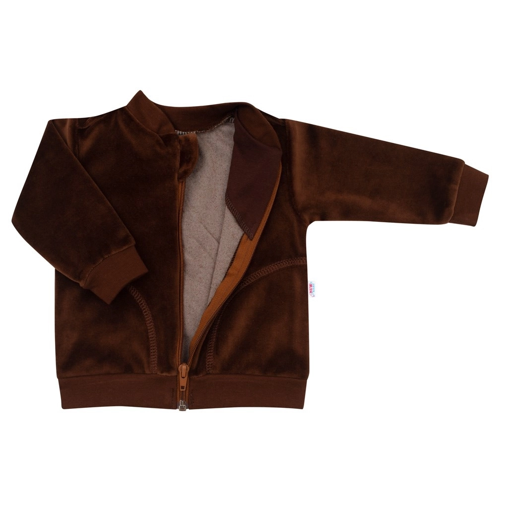 Hanoracul din catifea pentru copii NEW BABY, de culoare maro, oferă confort pentru fiecare zi. Are închidere practică cu fermoar pe toată lungimea și margini elastice la talie și la mâneci pentru o potrivire mai bună. Datorită materialului moale și plăcut, este ideal pentru pielea sensibilă a copiilor.