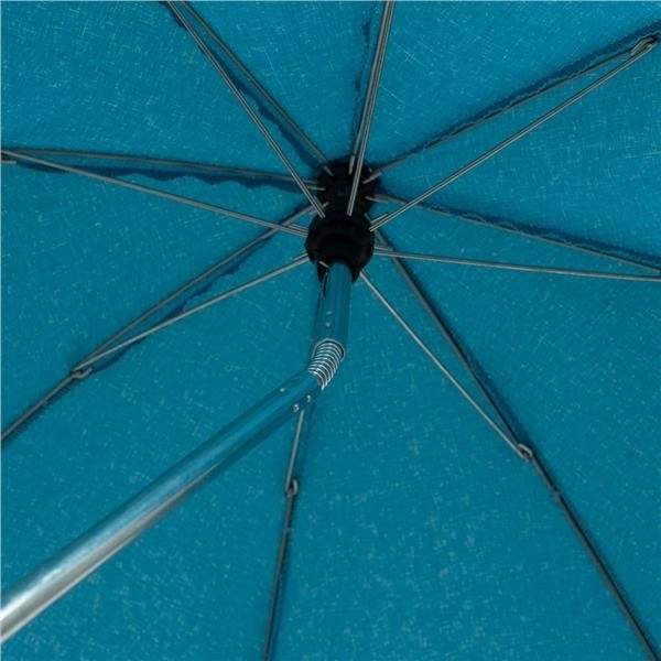 Umbrela practică pentru cărucior, în nuanța elegantă melanj albastru, oferă bebelușului protecție eficientă împotriva radiațiilor solare în timpul plimbărilor prin oraș și în natură. Articulația cu arc permite reglarea lină a înclinării în funcție de direcția soarelui, astfel încât umbra cade mereu acolo unde este nevoie.