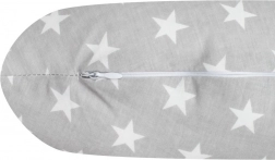 Pernă de alăptare practică New Baby, cu un model delicat gri cu steluțe, asigură poziționarea confortabilă a bebelușului și ușurarea spatelui mamei în timpul alăptării. Are husă din bumbac detașabilă, este plăcută la atingere și cusută din materiale de calitate pentru utilizare zilnică.