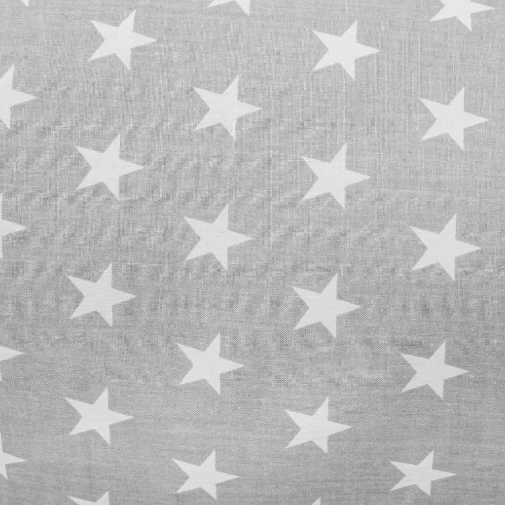 Husa din 100% bumbac este respirabilă și blândă cu pielea, iar umplutura din poliester își menține forma și oferă sprijin optim. Motivul stilat cu steluțe, în nuanță gri neutră, se potrivește perfect în orice locuință.