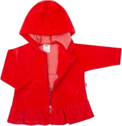 Hanoracul din velur pentru copii cu glugă de la New Baby, în culoare roșu intens, încântă prin materialul moale și închiderea practică cu fermoar. Are fermoar pe toată lungimea, mâneci și talie cu benzi elastice și este ideal pentru purtare zilnică datorită amestecului de 80% bumbac și 20% poliester.