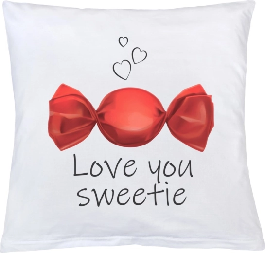 Această pernă stilată, cu dimensiunea de 40 × 40 cm, este un cadou grozav pentru oricine vrei să faci fericit. Este decorată cu o imagine veselă și inscripția Love You Sweetie. Datorită culorilor certificate, este sigură și pentru cei mai mici copii, iar bumbacul 100% este plăcut la atingere.