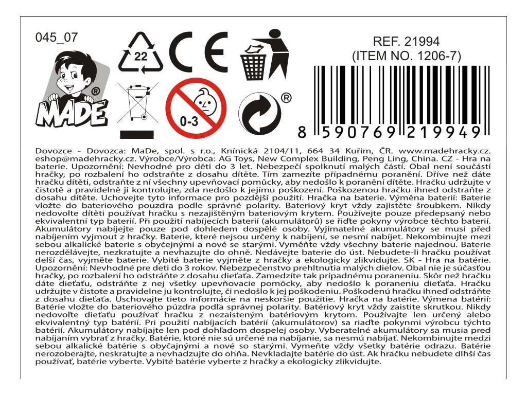 Pachetul conține jucăria din plastic într-o cutie practică. Pentru punerea în funcțiune sunt necesare 3 baterii de tip AAA (nu sunt incluse).