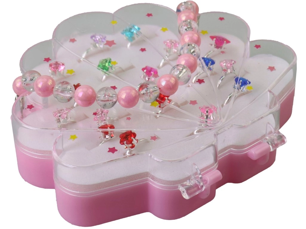 Acest set de inele este alegerea ideală pentru micile domnișoare care iubesc podoabele și jocul de-a prințesele. Fiecare inel este conceput să fie ușor, confortabil și simplu de pus pe degețelele copiilor. Cutia display practică asigură o depozitare ordonată și o prezentare frumoasă – excelent și ca dar.