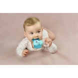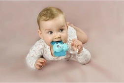 - Alinare la erupția dentară: siliconul moale masează delicat gingiile.