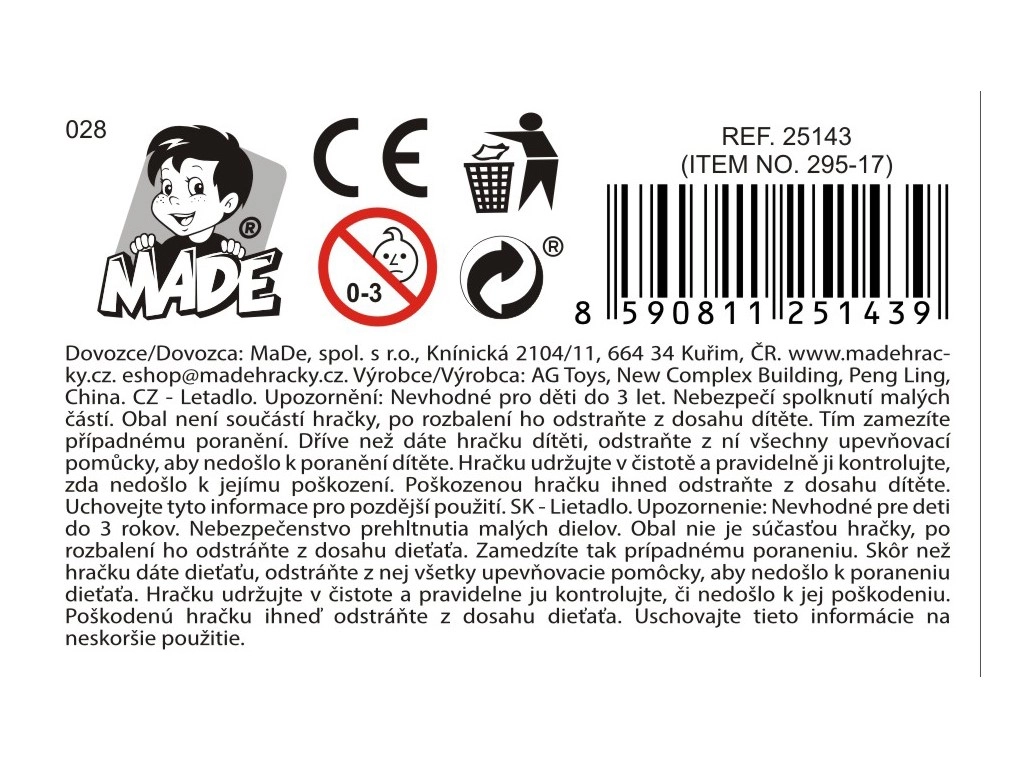 Avionul este gata de utilizare imediat după despachetare, nu necesită baterii și este ideal pentru joacă atât în interior, cât și în exterior. Ambalajul sigur de tip blister protejează produsul în timpul transportului și îl transformă într-un cadou grozav.
