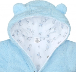 Combinezon practic de iarnă pentru bebeluși cu glugă New Baby Nice Bear, ideal pentru zilele reci. Oferă construcție în două straturi cu fleece călduros și căptușeală din bumbac, închidere cu capse pe toată lungimea, o aplicație drăgălașă cu ursuleț și mănuși pe șnur pentru confort și căldură maxime.