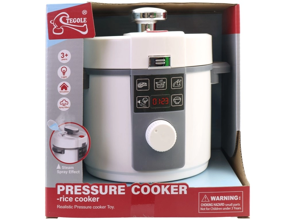 Jucăria pentru copii oală sub presiune – cuptor de orez pe baterii cu diametrul de 18 cm, din plastic de calitate, oferă sunete realiste și efecte luminoase (după introducerea bateriilor) și susține jocul creativ de gătit. Este potrivită pentru copii de la 3 ani și este livrată într-un ambalaj tip window box cadou.