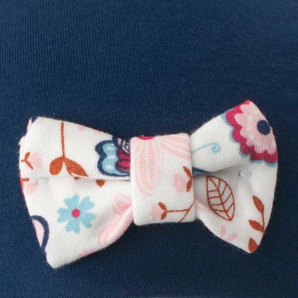 Setul drăgălaș din 2 piese NEW BABY Missy include o căciuliță moale cu fundiță și o bandană pentru gât, reversibilă, cu închidere reglabilă pe două mărimi. Datorită materialului dublu, urechile sunt mai bine protejate de vânt, ceea ce îl face un accesoriu practic pentru primăvară și toamnă. Plăcuta combinație din bumbac cu elastan asigură confort și o potrivire perfectă.