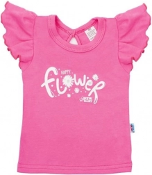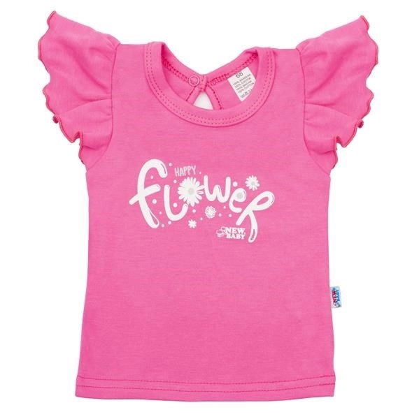 Setul drăgălaș din două piese pentru bebeluși New Baby Happy Flower, în culoare roz închis, îmbină confortul cu stilul. Conține un tricou cu inscripția Happy Flower și mâneci cu volănașe, precum și pantalonași comozi cu imprimeu floral. Datorită capsei la gât, se îmbracă ușor. Fabricat din 100% bumbac, delicat cu pielea fină a bebelușului.