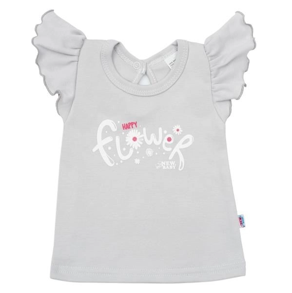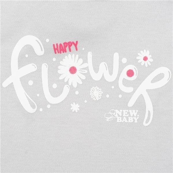 Setul drăguț din 2 piese New Baby Happy Flower, în culoare gri, îmbină confortul cu stilul. Conține un tricou cu mâneci cu volane și închidere cu capse la ceafă, precum și pantaloni de trening cu betelie elastică și imprimeu floral. Fabricat din 100% bumbac pentru finețe, respirabilitate și confort pe tot parcursul zilei.