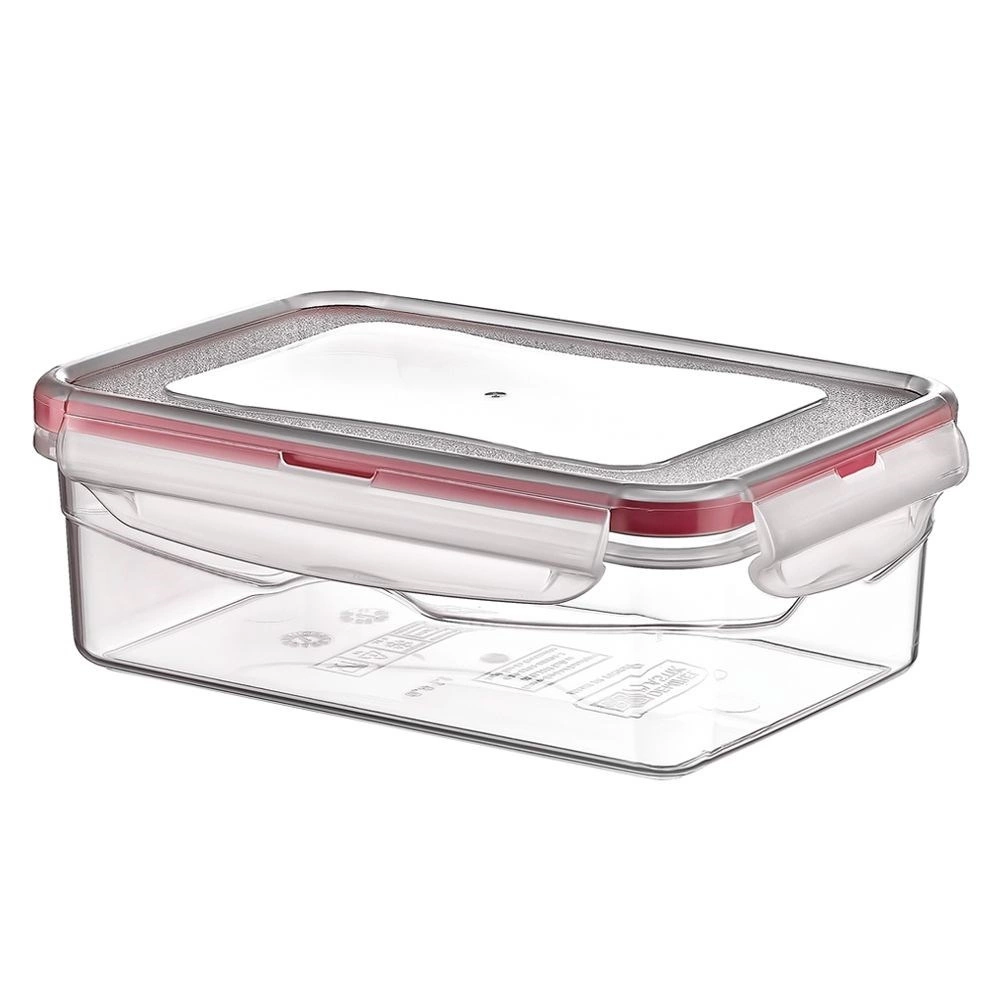 Cutia transparentă din plastic pentru alimente, cu volum de 400 ml, păstrează mâncarea proaspătă mai mult timp datorită garniturii de etanșare din silicon și celor patru cleme de închidere. Dimensiunile compacte de 15 × 10,5 × 5 cm se potrivesc în frigider, geantă sau lunch box și permit stratificarea și organizarea ușoară.