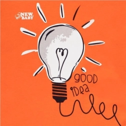 Tricou adorabil pentru copii NEW BABY din bumbac 100% moale, cu mânecă lungă și imprimeu vesel cu becuri și inscripția good idea. Închiderea comodă pe umăr cu capsă facilitează îmbrăcarea, bordura contrastantă adaugă stil, iar materialul moale și respirabil este delicat cu pielea copiilor.