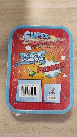- Cutie metalică de colecție, bandă desenată aleatorie, pelerină aleatorie (roșie sau albastră), magnet aleatoriu cu erou