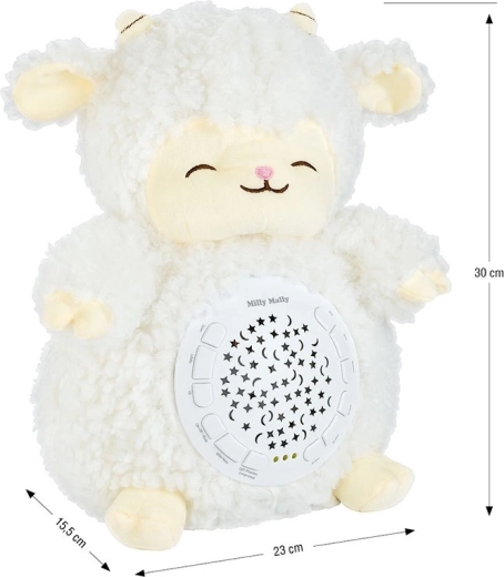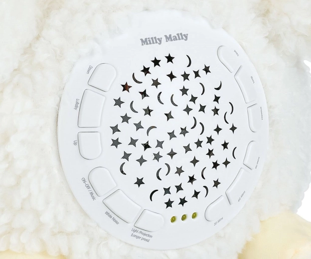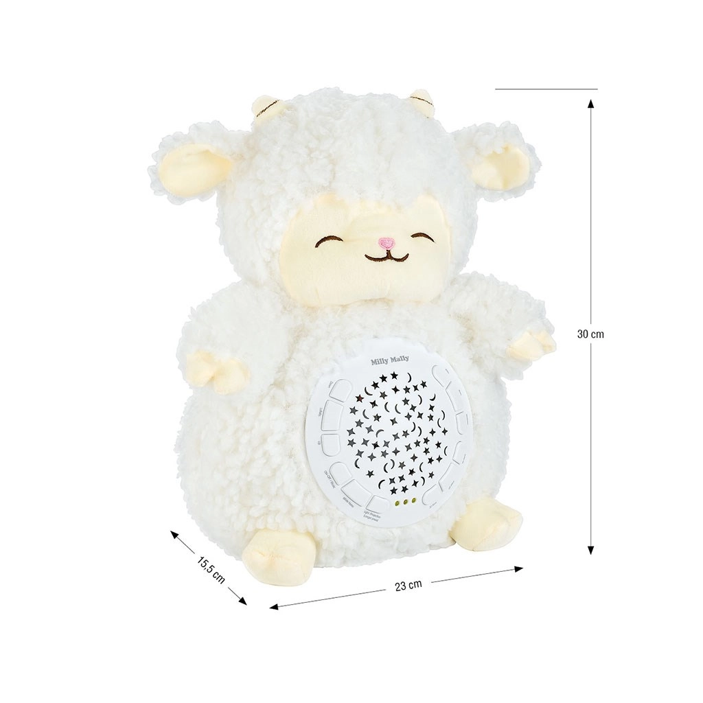 Transformați camera copilului într-un loc liniștit pentru adormit. Oița din pluș cu proiector MILLY MALLY proiectează cerul nopții cu stele și redă melodii și sunete din natură care îi ajută pe cei mici să adoarmă mai ușor. Materialul moale și lumina blândă induc o stare de confort și siguranță.