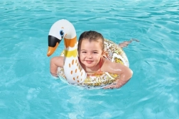 Colacul gonflabil cu motiv de lebădă atrage prin designul sclipitor și culorile vii pe care copiii le adoră. Este realizat din PVC durabil și conceput să reziste la umflări și dezumflări repetate. Supapa de siguranță previne pierderea accidentală a aerului.