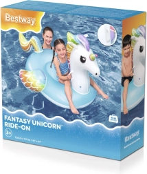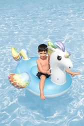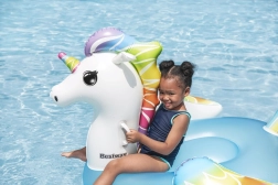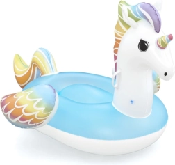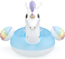 Unicornul gonflabil Bestway încântă prin culori curcubeu vii și scaunul albastru confortabil. Datorită bazei late și celor două mânere solide, copiii se simt în siguranță și confortabil la joacă în apă. Materialul PVC de calitate rezistă utilizării zilnice, ca să te bucuri de vară fără griji.