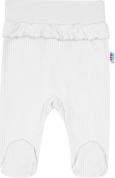 Pantalonii cu botoșei au o betelie lată și elastică, care se adaptează burticii fără presiune neplăcută. Materialul ribat discret și micile volănașe oferă un aspect delicat, potrivit atât pentru fiecare zi, cât și pentru ocazii speciale.