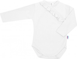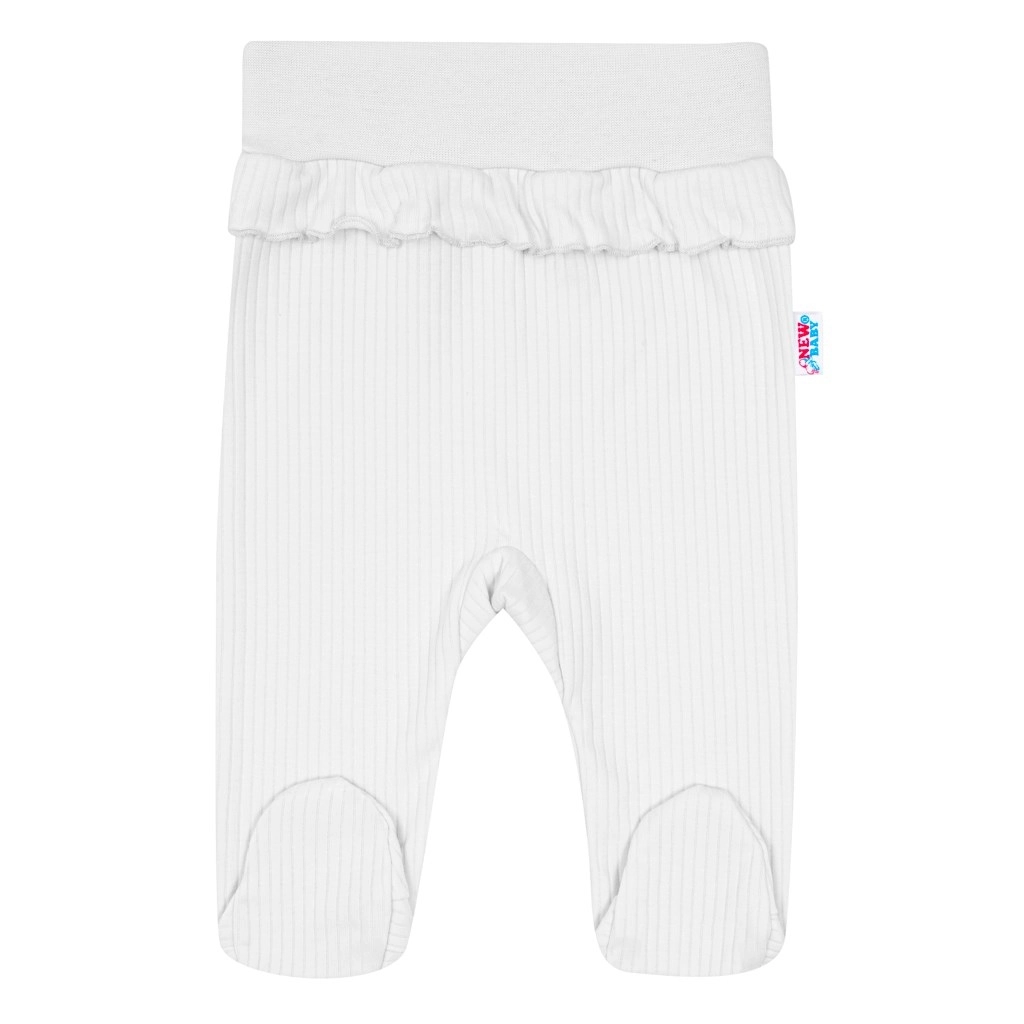 Adorabilul set din bumbac în 2 piese New Baby Stripes, în culoare albă, conține un body cu mânecă lungă și pantaloni cu botoșei. Realizat din 100% bumbac plăcut, cu dungi fine în relief și volănașe delicate, este ideal pentru pielea sensibilă a bebelușilor. Închiderea laterală cu capse este practică și ușurează îmbrăcarea și schimbarea, iar betelia moale și elastică a pantalonilor nu apasă pe burtică.