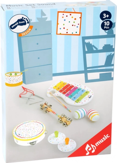 Descoperă bucuria muzicii cu acest set drăguț cu buline de la Small Foot – ideal pentru primele încercări muzicale ale copiilor. Setul oferă 6 instrumente diferite cu sunete unice și sprijină dezvoltarea ritmului, coordonării și auzului. Datorită combinației de lemn și metal de calitate, setul este durabil și sigur pentru copiii de la 3 ani. Nu sunt instrumente muzicale, ci jucării pentru distracție.