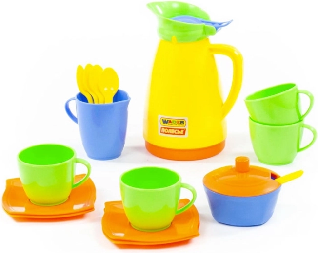 Setul stilat de cafea pentru copii Alica de la WADER pentru 4 persoane îi va încânta pe toți micii barista. Conține cești cu farfurioare, o cană, lingurițe, un recipient pentru lapte și o zaharniță cu capac. Este fabricat din plastic de calitate și este sigur pentru copii de la 1 an.