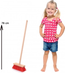 Mânerul din lemn, șlefuit fin și în nuanță naturală, se potrivește perfect în mâna copilului și asigură o prindere sigură și comodă la măturat.