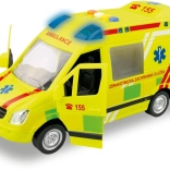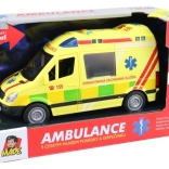 Jucărie realistă ambulanță la scară 1:16 care oferă copiilor o experiență autentică de intervenție. Se deplasează prin mecanism cu volant, are girofar funcțional cu lumini albastre, anunțuri vocale în limba cehă ale echipajului și dispeceratului, uși care se deschid și este inclusiv cu baterii.