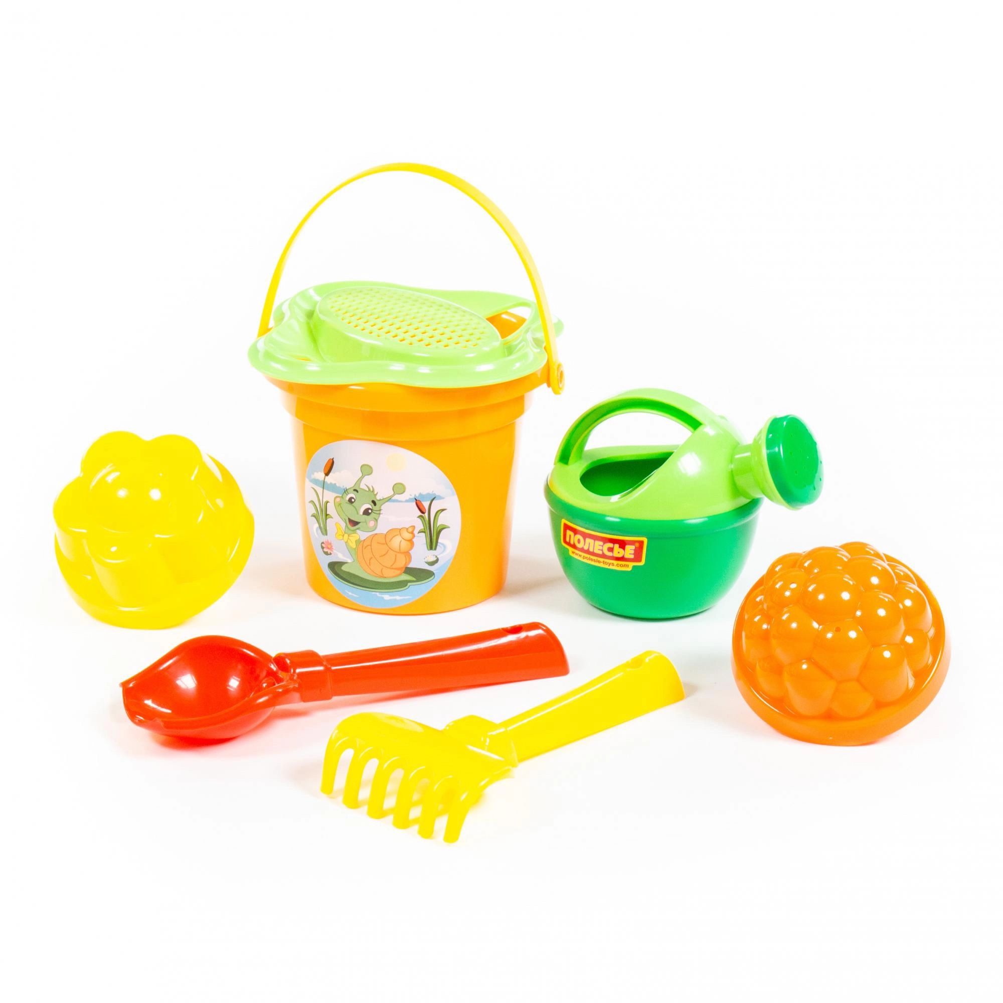 - Găletușă cu sită, stropitoare, lopățică, greblă, 2 forme