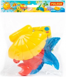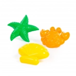 Setul conține 3 forme de aproximativ 13 cm, care datorită plasticului rezistent și întreținerii ușoare sunt potrivite pentru joaca zilnică în nisipar și pentru vacanțele la mare. Ambalajul practic în săculeț facilitează transportul și depozitarea.