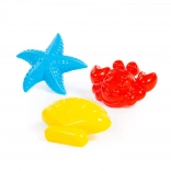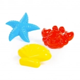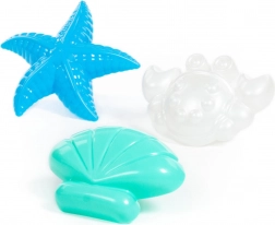 Stea de mare, crab și scoică care susțin construcțiile creative și ore întregi de distracție pe plajă și în nisipar.