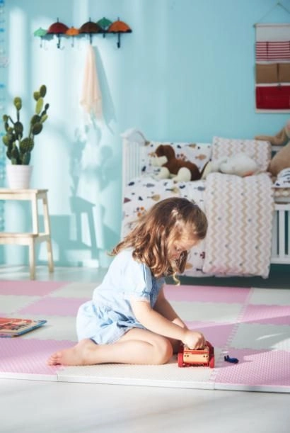 Spuma EVA este impermeabilă, nu reține praful sau acarienii și se curăță ușor cu o lavetă umedă – ideală pentru camera copilului.